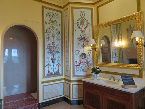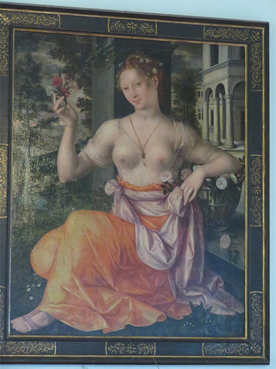 When the rebuilding of the castle was completed after the fire, the family moved back in, and the Baroness Simone de Bastard’s suite of rooms were also open to view. Within is a photograph of her, taken shortly before her death in 1999. She also has in her room, above the fireplace, a 1554 painting of Flora, the Roman goddess of spring and fertility.