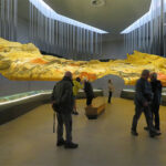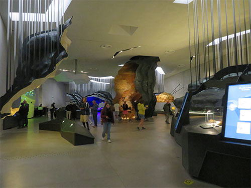Then we crossed the hall and sat for a film presenting painted art from around the world, showing that humans have been expressing themselves in similar ways in many places. Then the next room showed images of the animals from different parts of the world, scanned across the walls and floor, indicating other cave art and where they were found. Some of the images were made to move, jump and run. A small boy watching, ran around the room trying to catch the creatures. It was fun to watch him so excited to touch the wall where they stood and moved.