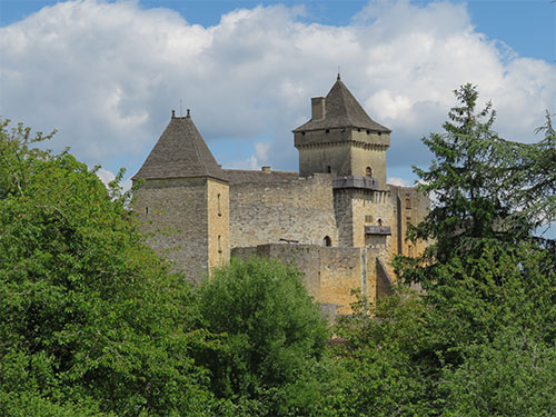 We left Beynac, following the river, and eight minutes away was our next castle, Chateau de Castelnaud. The castle sits on a high point on the land. Across the river and up on another rise, Castelnaud faces Beynac castle, and there is much history between them. Like many early castles, it has a long history.