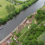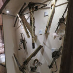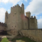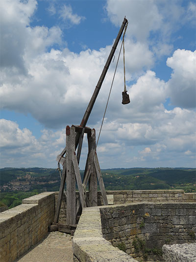 In 1985, Philippe Rossillon’s son took over running the castle, and opened the château to the public. He created the Museum of War in the Middle Ages and began the reconstruction of life-size trebuchets and other siege instruments with demonstrations for the tourists. Many of these throwing weapons were mounted on the upper terrace. On a lower terrace, children gathered and were instructed on how a trebuchet worked. Finally, the large siege weapon launched a projectile over a wall to an empty lot, and the kids excitedly yelled when it was finally released.