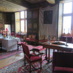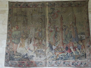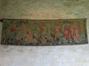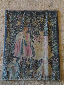 Benyac Castle at one time, was where the famous series of six tapestries, known as The Lady and the Unicorn, were hung, but now they are at the Cluny Museum in Paris. There were still many other tapestries that hung in the castle, along with intricate hand-carved antique dark cabinetry.