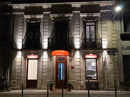 When we were in Bordeaux nine days before, it was still in the slow season with few people. Now, the streets were packed with people and cars. We had directions to the hotel we had booked in the center of town to drop off our suitcases, but when we got near, there were bollards blocking the way. We ended up having to go directly to the parking garage for the hotel two blocks away. The entrance to it was exceedingly narrow spiraling down and very steep. We parked in a good spot for electric cars. Then unloaded all our travel bags, got into an elevator and made our way on the street to the hotel.