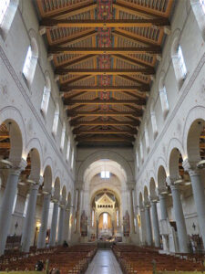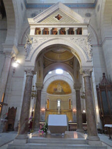 It was about an hour drive to Perigueux, where we had originally thought we would have lunch. But now, having already dined and our time was growing short, all we had time for was a quick trip to see the huge Catholic cathedral built in 1669, dedicated to Saint Fron, the first Bishop of Perigueux. The cathedral’s design was taken from St. Mark’s Basilica in Venice, with the layout in the form of a Greek cross, with five turreted domes. Then we left on our way back to Bordeaux.