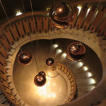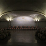 Anna led us down some spiral stairs where orange light globes hung through the center of the two-story stairway, reminiscent of the yellow-orange color of the noble rot that forms on the grapes. At the bottom of the stairs, we viewed through heavy glass doors, hundreds of barrels across a vast floor, piled up on the left and on the right, and the name of Chateau d’Yquem facing us in gold letters upon the far wall. Then it was back up the stairs, and she pointed out that the barrels from 2022 were getting tasted to see which would be blended. The 2023 wines would be available by March of 2026, the bare minimum time from picking to bottling. Like the Chateaux d’Arche winery, the wines were all placed into white oak barrels until ready to be bottled.