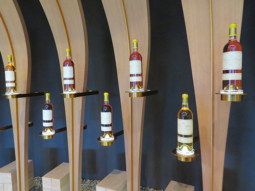 When we had finished savoring the deep rich, pale gold colored liquid, which starts at about $500 a bottle online, Anna led us to the show room, where they were hoping for us to purchase. There, we could see the different size of bottles that they sell. They didn’t have all the sizes that were offered, but here is a rundown on the sizes. Beyond the 1-liter size bottle, there is the Magnum that holds 1.5 liters, the Double Magnum (also the Jeroboam for champagne) that hold 3 liters, the Rehoboam that holds 4.5 liters, the Methuselah or Imperial that holds 6 liters, the Salmanazar that hold 9 liters, the Balthazar that holds 12 liters, the Nebuchadnezzar that holds 15 liters, the Melchior that holds 18 liters, the Solomon that holds 20 liters, the Sovereign that hold 22.5 liters, the Primat (Goliath) that holds 27 liters, and the Melchizedek that holds 30 liters.
