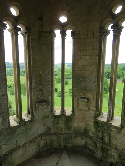 At breakfast, only one table was set, as all the other guests had departed the afternoon before. Benoit brought us our usual eggs and yogurt. We enjoyed a leisurely meal watching the morning light turn a little gray, as rain was forecast for within the hour, so we waited a bit before heading out. Then the weather cleared, so we left for our first venture of the day to see old and ruined things.