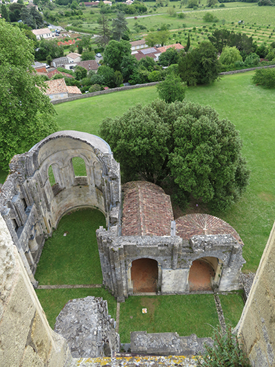 Our destined stop was the ruined Sauve-Majeure Abbey, (sauve – meaning woods or forest – thus, an abbey in what were once woods, now surrounded by a town). It was only open during the day for a limited time, from 10:30 a.m. to 1:00 p.m.