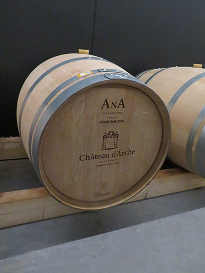 We arrived at our first wine tour and tasting at Chateau d’Arche, located in the heart of the Sauternes area. In 1611, Etienne d’Arche, the oldest son of Bernard d’Arche, the Knight and Lord of Arche, decided to settle in the area and bought an old farm. It took a while to build the chateau and to decide what to do with the land. But finally, in 1855, the descendants began to grow grapes and produce wine, and it has been selling ever since. In 1925, Armand Bastit-Saint-Martin, the mayor of the village of Sauternes, succeeded his father-in-law as the head of the Chateau, and undertook the process of reunifying the estate and expanding production.