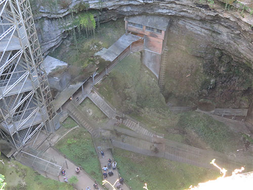 Before entering, we were given headsets, so our guide could describe what we were seeing. When we emerged from the elevators, we were able to look up and see the formation of the walls and how far down we had come.