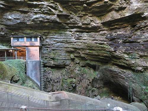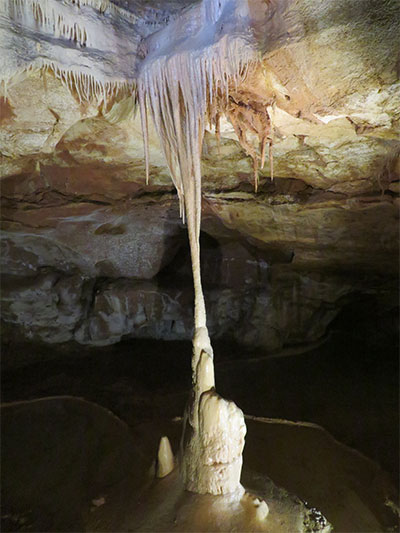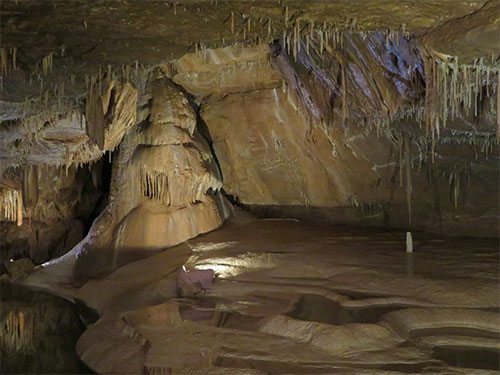 In order to reach the inner cave, people take an electric train, which began running in 1961. We got on and experienced a rickety and shaky ride that took us over 1300 feet into the mountain. The windows were covered, so we could not see the sides of the tunnel. Only a headlight at the front of the track allowed the driver to see where it was headed.