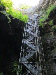 Since I had already visited the chasm before, seen the grand room, and knew that we would be taking a boat back, I decided to wait for Vere near the boat landing, while he scaled the long stairs up to take pictures of the grand room. When waiting, I decided to climb one short stair to read about the memorial of the cave’s discoveries, and it offered a place to sit. That was my mistake, as I had not remembered that the path was circular and came down the other side of the grand cave, taking people back to the boats.