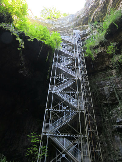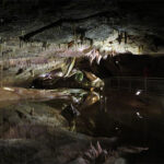 It has a monumental opening entrance of nearly 3,280 feet across at the top, and its center which dramatically sank millions of years before, fell 338 feet down. An underground river through a limestone plateau, travels just over thirty-five miles. The elongated cave intersects two ages, the lower to Upper Bajocian period, and the upper dating to the Lower Bathonian Period (approx. 170.9 to 168.2 million years ago) in the Middle Jurassic period.