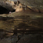 Here is some of the cave’s history: In 1907, at the base entrance of the chasm, there was still a small dry stone wall and the remains of a hearth. Armand Viré believed that these remains had been left by men seeking refuge, who had been defeated during the Hundred Years’ War (1337-1453). Ashes, coals, kitchen debris, and weapons were found and subsequently displayed to the public in a glass case at the entrance to the chasm. This part of the cave had also been inhabited later in 1595, when men took advantage of the climatic conditions to extract potassium nitrate (saltpeter).