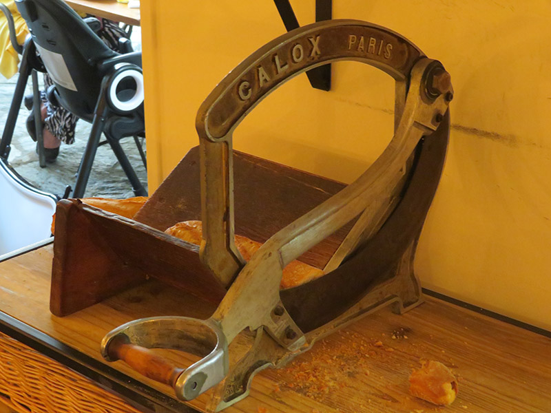 When the waitress went to fetch our bread, she went to a counter near us to cut it with the same antique bread cutter we had seen in the kitchen of the Chateau d’Ansouis.